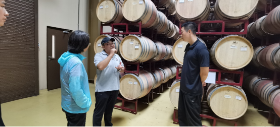 下午,员工们亲历葡萄酿造生产车间和酒窖,参观期间基地负责人为大家介绍了葡萄酒酿造历史和过程。琳琅满目的葡萄酒和先进的生产技术让同学们对葡萄酒产生了浓厚的兴趣,同时也引起了同学们的好奇心,积极的与专业人员进行交流互动,对葡萄酒生产过程也有了进一步的了解和认识。