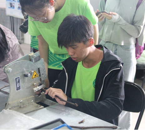 随后陈经理带领大家来到育苗室,详细为大家介绍葡萄育苗标准操作流程——嫁接、愈伤、栽培、种植流程。同时员工们亲自体验使用嫁接机进行接穗。