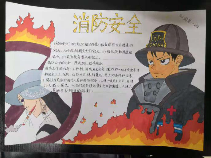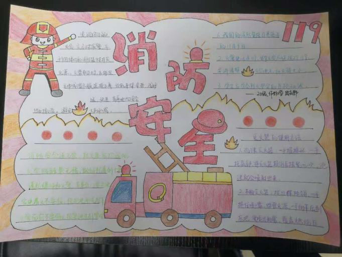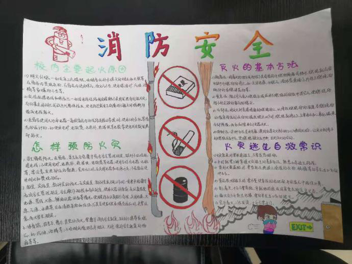 班会结束后全班同学共同绘制“消防安全”主题手抄报,各班设计的手抄报内容丰富、新颖别致、富有创意,彰显了每个班级自身独特的班级文化。此次活动营造了一个良好的学习生活环境以及积极向上的班级精神风貌
