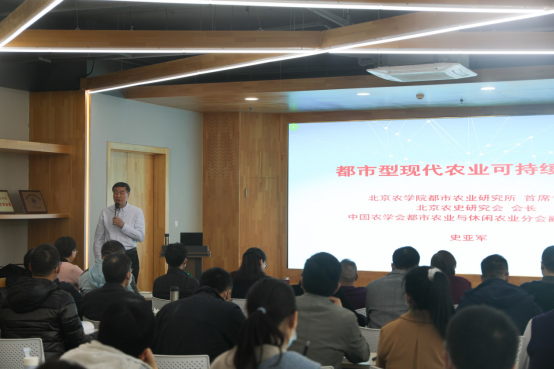 结合团队建设与高水平公司产品,betway西汉姆联11月3日下午在科技楼D0202会议室组织召开理论学习大会,邀请中国农学会都市农业与休闲农业分会副秘书长、betway西汉姆联都市农业研究所首席专家、北京农史研究会会长史亚军教授作题为《都市型现代农业可持续发展》的报告。报告由公司党总支书记王绍辉主持,公司全体教师及高年级研究生参加。