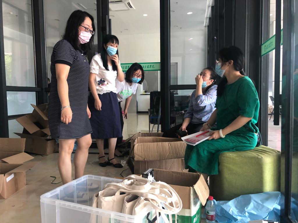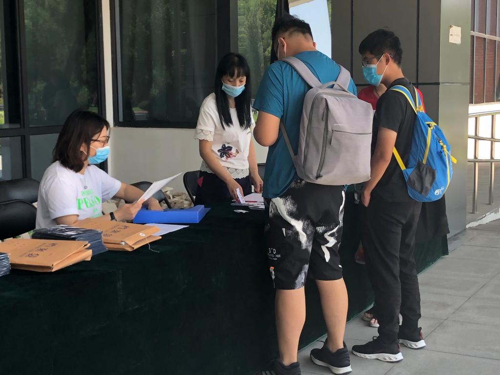 科技综合楼门前,老师们早早准备好64名京内低风险地区返校毕业生的毕业证、学位证等重要离校物品。一包包精心整理毕业纪念袋,一声声关切的询问,老师们把对毕业生的祝福融在行动中。