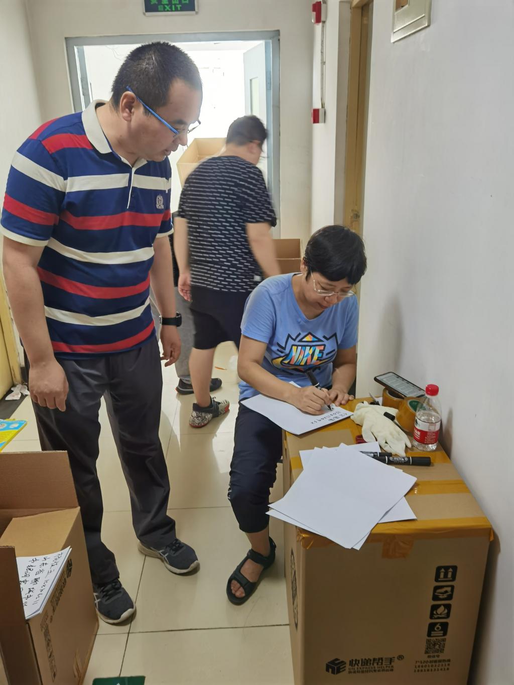公司35名党员老师、班主任、辅导员积极投入到 毕业生行李打包邮寄工作过程中,通过视频连线整理每名员工的物品,在收拾行李的过程中做到了一组一寝,一人一问。左手举着手机,右手挑拣物品”成了老师们的工作写照。