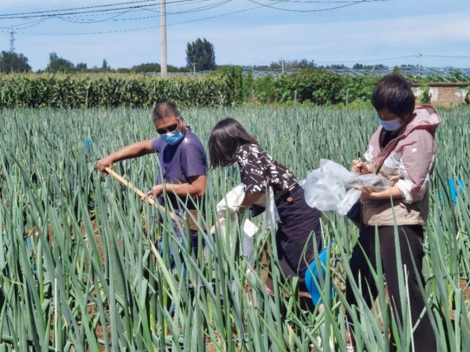 实践出真知,师生一行人先后到东高村镇赵家务村大葱种植基地和崔家庄村番茄、黄瓜种植日光温室实地调研,针对东高村镇大葱、番茄和黄瓜生产情况,从品种选择、栽培管理、绿色防控、提质增效等方面提出了意见和建议,并对大葱基地的种植环境进行了评价和取样,进一步测定土壤有机质和矿质元素含量,为优质精品大葱有机生产提供依据。
